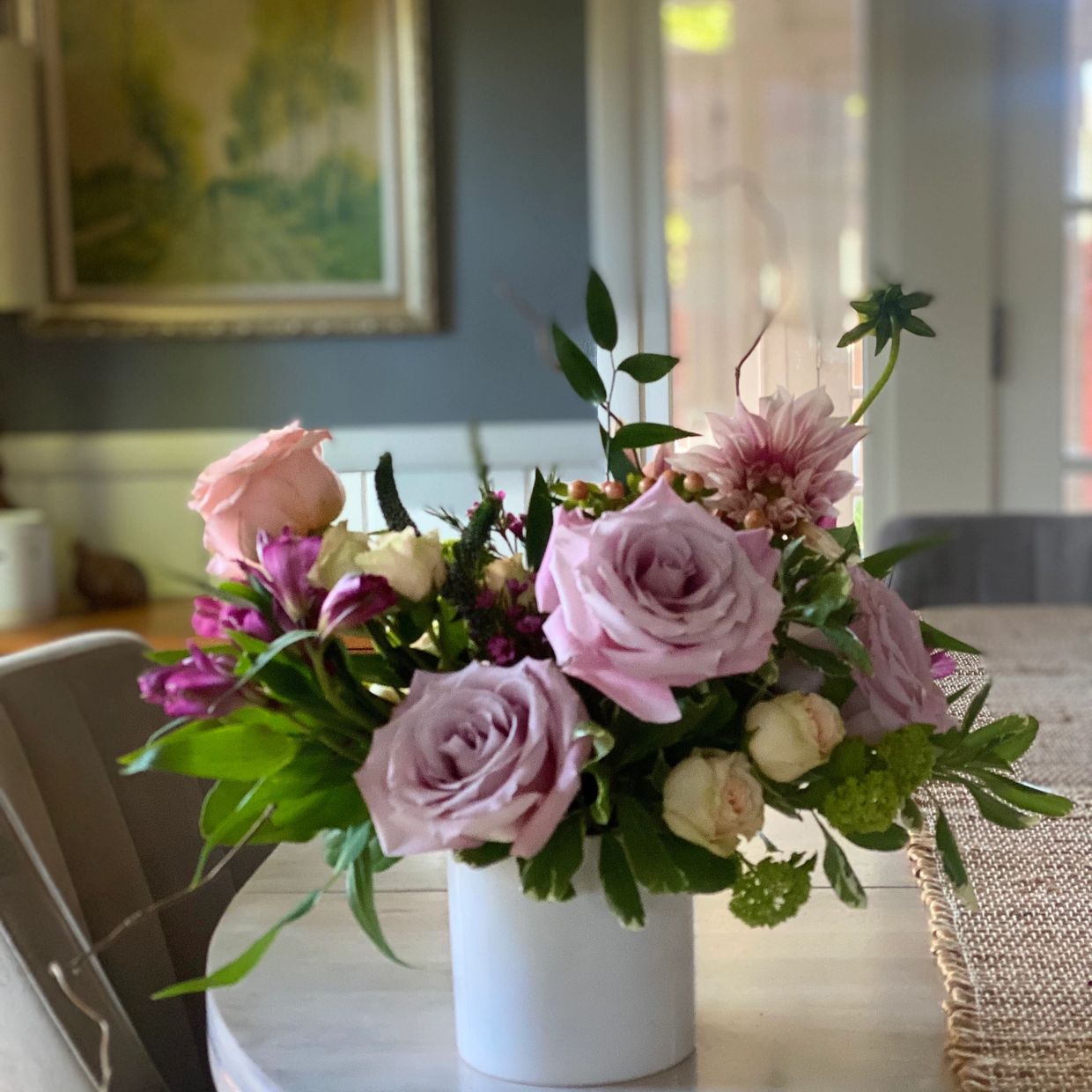 *We love to choose the freshest blooms and foliage to create a one of a kind arrangement for you. The pictures on our website represent style and size that will be similar to what you will receive. The specific flowers and greenery that will be used will vary depending on the season and availability. If you would like something particular we would be happy to quote you for a custom order. Please navigate back to our arrangement page and click on the custom option.